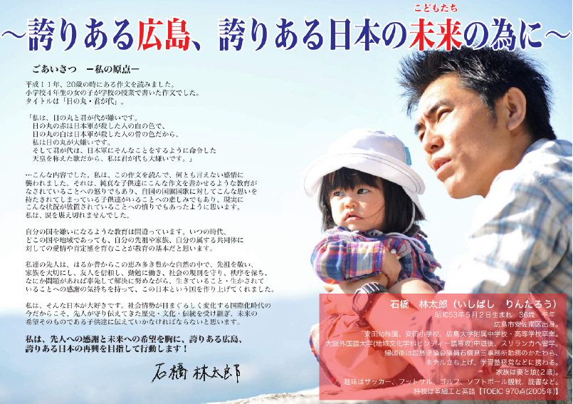 私は、先人への感謝と未来への希望を胸に、誇りある広島、誇りある日本の再興を目指して行動します!